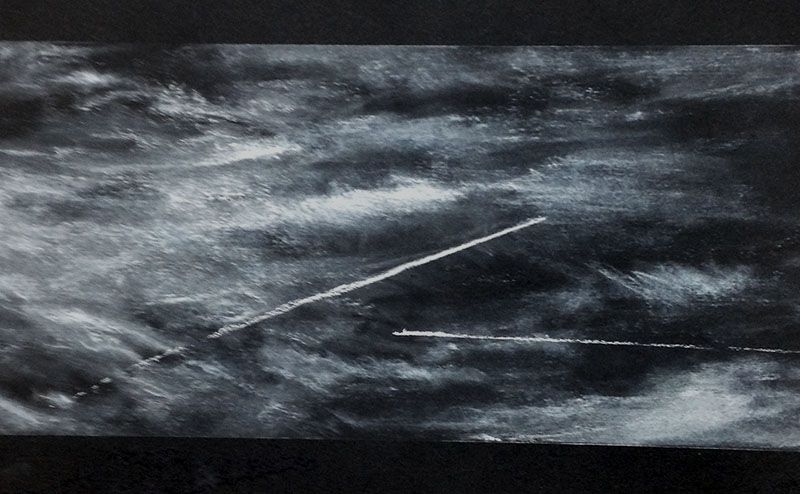 - Contrails, chalk on black paper, 14,8 x 21 cm