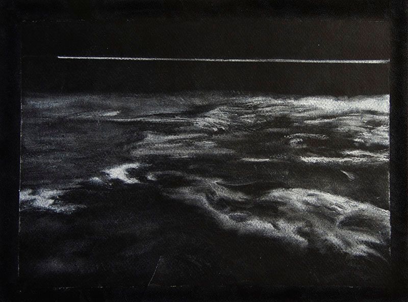 - Contrail 1, chalk on black paper, 14.8 cm x 21 cm