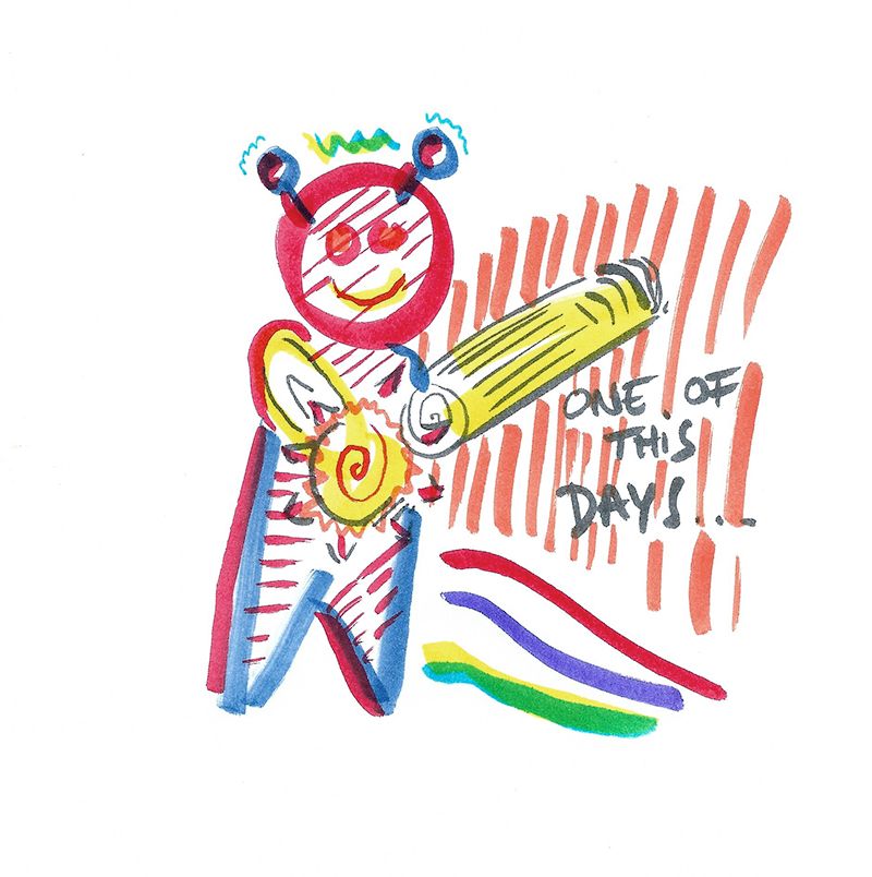 - One of these days, watercolor marker on paper, 15 x 15 cm