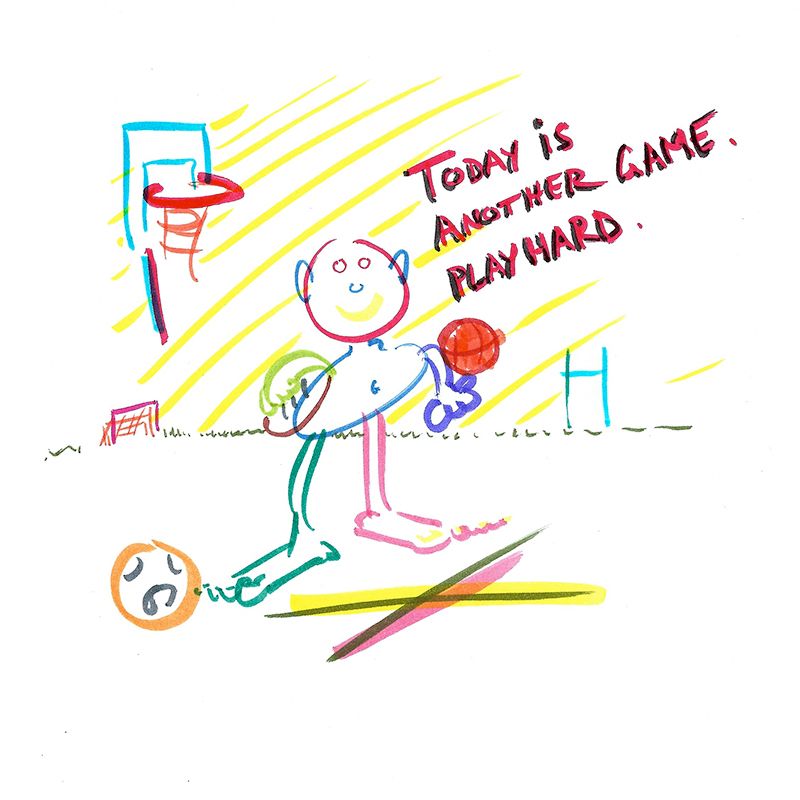 - Play hard, watercolor marker on paper, 15 x 15 cm