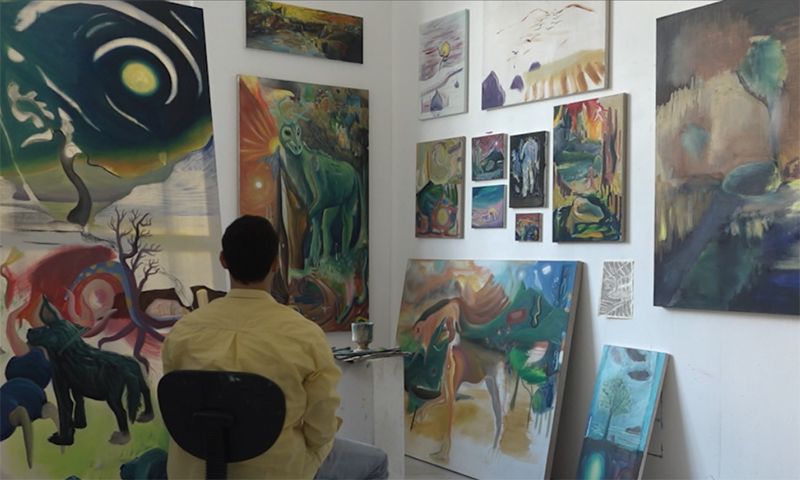 Além explores a transition state in my work : going from painting to filming.